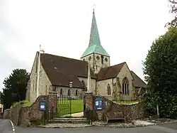 The Anglican parish church of St Mary and St Gabriel is at the southwestern end of the village street, in an elevated position. It has a coppered spire on the tower and a peal of six bells. Major restoration work was carried out in the 1850s,[4] and in 2010 further improvements were made including the building of an attached room for the Sunday school. The church is a Grade I listed building.[9]