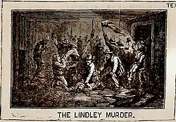 ![]() | "Texas: The Lindley Murder" | "Bell County, Texas: On the night of December 3, a mob of about thirty entered the jail, murdered Mr. Lindley, his son, and another inmate of the jail, who was an entire stranger to the Lindleys." | After Jasper Lindley and Sam Martin were murdered, Jonathan and Newton Lindley and 15 soldiers shot their killers. The Lindleys were then jailed, and later shot to death in their jail cells by allies of men they shot.[8] |