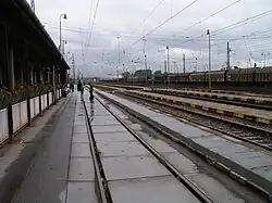 The station yard has tracks equipped with low level platforms for passenger services and tracks for freight workings.