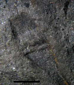 Sporogonites was a genus of Lower Devonian[2] land plant with branching axes.[3] It is known from Europe, Australia and Newfoundland.[4][5] It resembles a moss in that many straight axes, which grew to about five centimetres in height and possess terminal sporangia, grow from a planar basal surface.[2] Its spores were trilete and around 30 μm across.[2]