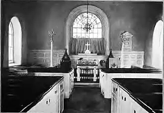 The "old" church building, constructed 1715, was added to or modified a number of times, in 1767, 1771, 1786, 1813, 1830, and 1907. These modifications included the relocation of the altar, the addition of an enclosed stair to the choir loft, the addition of a vestry room to the north, and the construction of an enclosure for the main entry door. A horse shed was built in 1850, and added to in 1871.[1] The horse shed has since been demolished.