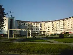 Half of the circle of the St. Francis Square is enclosed by polyfunctional building and therefore people not only live there but can also enjoy coffee, pizza and cocktail places. Important part of the complex is Local Authority Office. The last but not least important part of the St. Francis Square is a Roman Catholic church of St. Francis of Assisi. Attached to it is also a cloister and pastoral center.