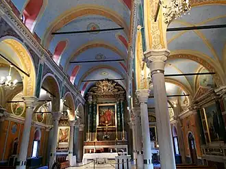 The church was built on top of a hill about 1200. Several times the temple was rebuilt. In 1617, it was destroyed by the Turks. Since 1652 the church became the cathedral of the Roman Catholic Diocese of Syros and Milos. In 1834, the last time was rebuilt and since then has a modern look. In the church there are the icon of Saint George and the icon of the Mother of God "Panagias tis Elpidas" of artistic and cultural value. The church has also a portrait of Bishop Ioannis Andreas Kargas, who was hanged by the Turks.