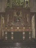 The wrought ironwork, gates, railings, candlesticks and candelabra were made by the village blacksmith, F. Coldron.