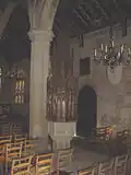 There is a late 15th-century German painting of the Ascension and a piece of Anglo Saxon interlace stonework in the vestry. Under the tower there are the remains of a 14th-century trinity which has the top half of God The Father missing. There are Green Man bosses to be found in the roof.