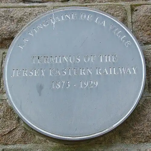 ![]() Plaque marking the site of the former Jersey Eastern Railway terminus | |||||||||||||||||||||||||||||||||||||||||||||||||||||||||||||||||||||||||||||||||||||||||||||||||||||||||||||||||||||||