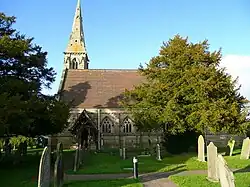 The churchyard contains the war grave of a World War I soldier of the Royal Field Artillery.[2]
