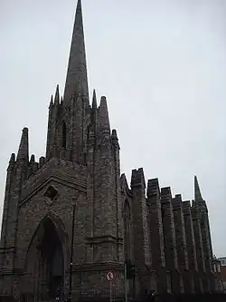 St Mary's Chapel of Ease, also known as "The Black Church", is a former chapel in Dublin, Ireland. Now deconsecrated, it was a church of the Church of Ireland located on St Mary's Place, Broadstone, Dublin. It is constructed from local calp limestone which takes on a dark hue when wet.[2] This is the origin of the building's nickname. A chapel of ease is a church building, other than a parish church, that is located within the bounds of a parish for the convenience of those who cannot conveniently reach the main church. The parish's main church, now also deconsecrated, was St Mary's on Mary Street.