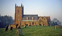 In the churchyard, along the woods to the north, is the grave of Emma Vernon (1754–1818), who inherited the Hanbury Estate.[3] The churchyard also contains a war grave of a Royal Corps of Signals soldier of World War II.[4]