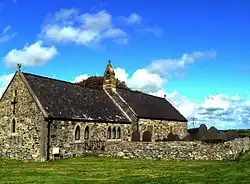 St Mihangel's Church is set within a gated and walled churchyard at the side of the road in the village of Llanfihangel yn Nhowyn in Anglesey, north Wales. It is dedicated to St Michael (Welsh: Mihangel).[2] The village, which is about 5 miles (8.0 km) from the port town of Holyhead in the north-west of the island, takes its name from the church; the Welsh word llan originally meant "enclosure" and then "church", and "‑fihangel" is a modified form of the saint's name.[3][4]