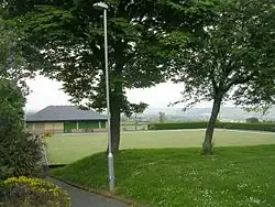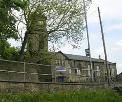 Bowling Green Primary School is on Bowling Green Road and is under the local authority of Calderdale Council.[11] The first school on the site was built by the local overseer of the poor in 1805.[12] The present school building, built on the former bowling green and designed by John Leeming (1849–1931) of Halifax,[13] was opened by the School Board on 24 February 1882, its two foundation stones being dated 1 October 1881.[14] The foundation stones were laid by John Mellor and Thomas Carter, the chairman and vice chairman of the School Board. Local ratepayers funded their silver trowels for the ceremony. Joseph Stott, a board member, gave a speech saying that "he believed there was a necessity for additional means of instruction," before hundreds of people were given tea in the local Sunday school room.[13]