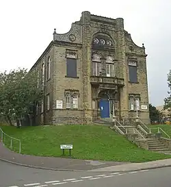 Stainland Mechanics' Institute was built by the Shaw family in 1883 by public description, "to improve the moral, social and intellectual habits of the inhabitants". The building was opened by the Mayor of Leeds on 7 June 1884. Over the years it suffered as income declined. By 1952, the trustees decided to sell the building but offered it to Elland UDC. In 1954, a Community Centre was formed by the Trustees. In 1967 it was taken over by Elland UDC. Some maintenance was undertaken but by 1974, when Calderdale MBC became the owners, it needed repairs. In 1977, the council demolished the twin towers at the entrance. Several surveys were carried out but £500,000 was required to bring it up to standard. A committee tried to raise this money but was not successful and the centre closed on 18 December 2009. The building was signed back to the council and declared surplus to requirements.[5] In January 2011, councillors voted to sell the building as the cost to bring the building up to standard is too much.[6]
