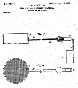 5. ^ The principle one of them mentioned in the Supreme Court's opinion is the 1899 Arrnott U.S. Pat. No. 633,941. See 226 U.S. at 35. Two other patents, the Dithridge and the Lindsay patents, were improvements and infringements of the Arrott device. 226 U.S. at 39.