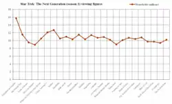 - ^ a b c d e f g h i j k l m n o p q r s t u v w x y z aa "Star Trek: The Next Generation Nielsen Ratings – Seasons 1–2". TrekNation. Archived from the original on October 5, 2000. Retrieved March 31, 2013.