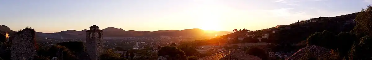 Stari Bar is located on a hilltop (Londša hill) overlooking the Adriatic Sea, at the foot of Mount Rumija. It is surrounded by agricultural land.[2] Bar is south of the Bay of Kotor between the fortresses at Budva (Buva) to the northwest and Ulcinj to the southeast.