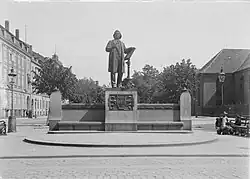 The composer Niels W. Gade died in 1890. After a few years a committee of private citizens began to work for the creation of a monument that would commemorate the composer. A site on Sankt Annæ Plads close to the Garrison Church where Gade for many years had worked as organist, was selected. The committee commissioned the sculptor Vilhelm Bissen to design a memorial and the bronze sculpture was cast at Lauritz Rasmussen's bronze foundry.[1] The monument was unveiled on Sankt Annæ Plads on 24 June 1897. The monument was moved to its current location in Østre Anlæg in May 1934.[2]