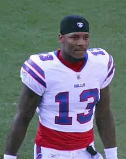 Steven John Johnson Jr.[1] (born July 22, 1986) is an American former professional football player who was a wide receiver in the National Football League (NFL). Johnson was selected by the Buffalo Bills in the seventh round of the 2008 NFL draft and also played for the San Francisco 49ers and San Diego Chargers. He played college football at Kentucky. Despite never making the Pro Bowl, Johnson was the first Bills receiver to post back-to-back seasons with over 1,000 yards receiving, and has been considered one of the best draft steals in franchise history.[2]