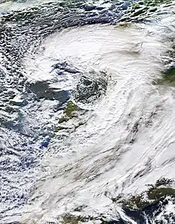 ![]() Storm Arwen as a powerful extratropical cyclone over the North Sea. | |