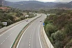 The Strada statale 131 Diramazione Centrale Nuorese (SS 131 dir/centr Nuorese) is an Italian state highway 144.0 kilometres (89.5 mi) long in Italy located in the region of Sardinia. This freeway is connected to the Strada statale 131 Carlo Felice, it links Abbasanta (a village near Oristano) with Olbia, via Nuoro, crossing the hinterland mountainous regions of the island.