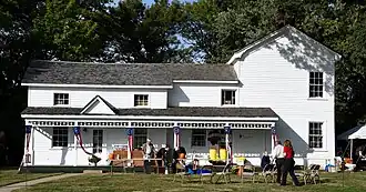 The Strawbridge-Shepherd House is a historic house located at 5255 Shepherd Road in Springfield, Illinois. Saddle and harness maker Thomas Strawbridge built the house for himself circa 1845. The original house was a two-story Greek Revival structure, a popular design choice at the time; it is one of the best-preserved Greek Revival houses in the Springfield area. Key Greek Revival elements of the house include its wide cornice trim resembling an entablature and the pilasters, sidelights, and transom around the front door. An addition from circa 1865 gave the house an "L" shape and added a new kitchen. Civil War veteran Charles M. Shepherd purchased the house in 1883. Shepard made several additions and modifications to the house; many of these added Queen Anne elements, such as the two porches with decorative spindlework.[2]