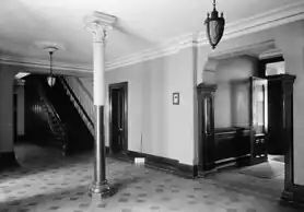 The building contained 16 apartments plus four artists' studios. Each apartment had its own toilet.[3] The parlor (public room) was in the front because it had the most light and occupants could look out onto the street. Behind that were bedrooms, then the dining room in the middle. The rear housed the kitchen and bathroom. Two staircases gave access to the floors, one for the occupants and a service stairwell for deliveries and servants.
