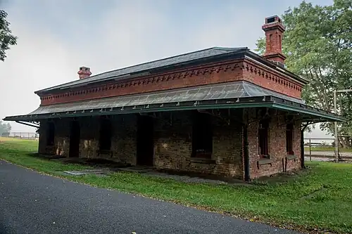 Stuyvesant station, also known as Stuyvesant Landing Depot, is a historic train station located in Stuyvesant, Columbia County, New York. It was built during the second half of 1880 after the original station was destroyed by a fire.[2] Mull & Fromer, Masons and Builders, of Catskill, New York, secured the contract to rebuild the station and E. Lampman was their carpenter.[3]