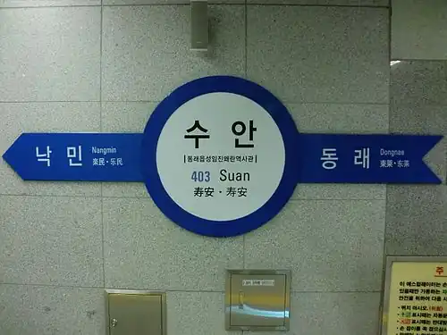 Suan Station (Korean: 수안역; Hanja: 壽安驛) is a station of Busan Metro Line 4 in Suan-dong, Dongnae District, Busan, South Korea.