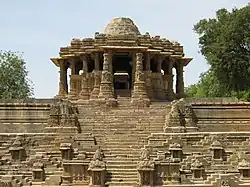 The Indian rulers were essentially worshipers of the sun and some of the sun temples were erected by them during the medieval period.[91] The sun temple known as Jayaditya was constructed by king of Nandipuri, Jayabhatta II. This temple is situated at Kotipura near Kapika in the Bharukachha district.[92] The Surya temple of Bhinmal known as Jagaswami Surya temple was also erected during this period.[93]