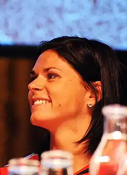 Anna Susanne Moberg (born 13 February 1986)[2] is a former Swedish footballer who played for Damallsvenskan club Kristianstads DFF and the Swedish national team. She was one of four reserve players named in the national squad for the 2012 Summer Olympics.[3]
