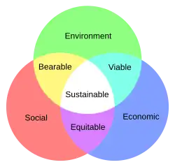 : CS1 maint: location missing publisher (link) - ^ a b c d e Purvis, Ben; Mao, Yong; Robinson, Darren (2019). "Three pillars of sustainability: in search of conceptual origins". Sustainability Science. 14 (3): 681–695. Bibcode:2019SuSc...14..681P. doi:10.1007/s11625-018-0627-5. ISSN 1862-4065.