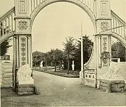The grounds consisted of a spacious turreted mansion, a carriage house, and outbuildings set in expansive gardens. The estate dominated the Lands End area, with an elaborate entrance gate. He spent in excess of a million dollars to recreate an Italian style garden. It was filled with fountains, planted urns, and statues, Victorian flower beds, hedge mazes, parterres, forests of trees, a glass plant conservatory, and other garden structures. Vista points included the "observation plaza" overlooking the Cliff House, and the "Dolce far Niente Balcony," a long terrace-like structure along the cliff overlooking Ocean Beach.[5] To provide garden decorations, he imported over 200 concrete replicas of Greek and Roman statuary from Belgium, to provide examples of European culture to visitors.[7]