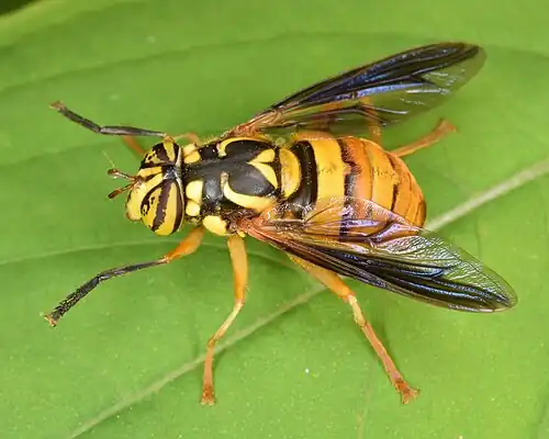 This article incorporates text from this source, which is in the public domain: Curran, Charles Howard (1925). ""Contribution to a monograph of the American Syrphidae north of Mexico"". The Kansas University Science Bulletin. 15: 7–216. - ^ a b Zetterstedt, Johan Wilhelm (1843). Diptera Scandinaviæ disposita et descripta. Vol. 1. Lundæ, ex Officina Lundbergiana, sumtibus auctori.