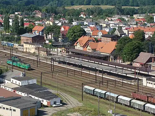 Szczecinek railway station is a railway station serving the town of Szczecinek, in the West Pomeranian Voivodeship, Poland. The station is located on the Piła–Ustka railway, Szczecinek–Kołobrzeg railway and Chojnice–Runowo Pomorskie railway. The train services are operated by PKP and Przewozy Regionalne.