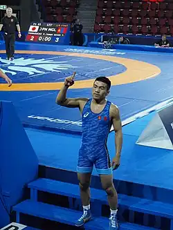 • Tömör-Ochiryn Tulga (MGL) vs the reigning World Champion Zain Retherford (USA), W 7–2