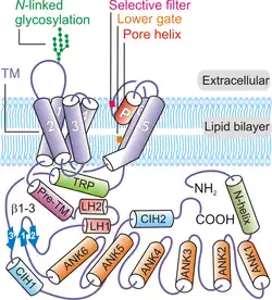 - ^ Singh AK, Saotome K, Sobolevsky AI (September 2017). "Swapping of transmembrane domains in the epithelial calcium channel TRPV6". Scientific Reports. 7 (1): 10669. Bibcode:2017NatSR...710669S. doi:10.1038/s41598-017-10993-9. PMC 5587609. PMID 28878326.