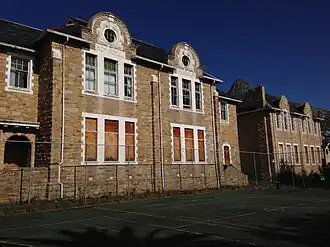 Tafelberg School was established on 23 July 1983.[8][9] It was originally a school for white students,[B] and was based in Sea Point from the 1980s until 2010.[5] The school was located at two separate sites in Sea Point and catered for children with special learning needs referred by schools throughout the Cape Peninsula.[8] The junior school was located at 3 Kings Road, on the corner of Tramway Road.[5][11][C] The senior school was located in a building at 355 Main Road which had previously housed Ellerslie Girls' High School from 1899.[D][E][F] In 1989 Ellerslie Girls' High School vacated the building following a merger with Sea Point High School, formerly Sea Point Boys' High School, which had become co-educational and Tafelberg School subsequently occupied the vacant building.[16][G]