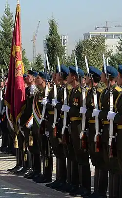 The Peacekeeping Operations Battalion, became one of the best units of the National Army due to it being trained by the National Guard of the United States in a partnership program. Since 2007, the United States, through the Global Peacekeeping Operations Initiative (GPOI) program, has been helping the Mobile Forces build its peacekeeping capabilities. The battalion has operated since 2010 in Dushanbe.[5] Since 2012, battalion units have taken part in a number of multinational peacekeeping exercises in Mongolia, Nepal, Kazakhstan, Germany and the United States.[6] The US intended for the battalion to be sent as a peacekeeper unit along with other United Nations forces. In 2016, the U.S. Embassy in Dushanbe handed over a built sanitary and hygiene complex for the peacekeeping battalion of the Mobile Forces.[7]