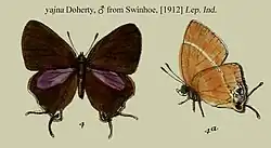 Tajuria yajna, the chestnut and black royal, is a butterfly in the family Lycaenidae. It was described by William Doherty in 1886. It is found in the Indomalayan realm.[2]
