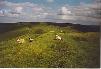 Views are extensive from Tan Hill, ranging from Cheesefoot Head near Winchester to the south-east to, in clear weather, the Black Mountains in Wales to the north-west, making this, alongside neighbouring Milk Hill, one of the most southeasterly points in the UK from which high mountain country can be sighted.[8] Salisbury Plain and, further away, the Mendips and Cotswolds are also clearly visible.