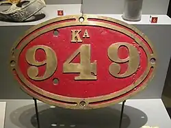 Number plate from KA 949, on display in the Auckland War Memorial Museum