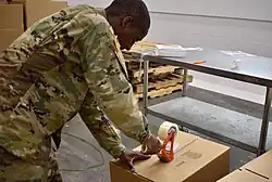 Some taping machinery is semi-automatic: the operator takes an object and puts it in or through a machine which automatically applies the tape. This helps save time and controls the consumption of tape.