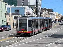 A westbound train at Taraval and 30th Avenue in September 2018 | |||||||||||