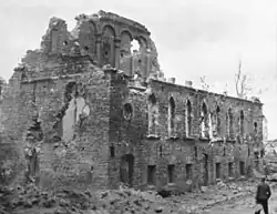 The first week-long killing spree of 1,600–2,000 Jews occurred a few days after Tarnopol was occupied by the German army at the beginning of Operation Barbarossa, the invasion of the Soviet Union.[5][6] The ghetto was established formally two months later.[4] Tarnopol was occupied by the Wehrmacht on July 2, 1941. Several hundred Jews followed the Soviets in their hasty retreat to the east.[6] Immediately afterwards, up to 1,000 dead bodies of political prisoners murdered by the NKVD were discovered at the Tarnopol prison and 1,000 more in nearby towns. In accordance with the Nazi Judeo-Bolshevism canard, the Germans declared the Jews responsible for the Soviet atrocities.[7][8]