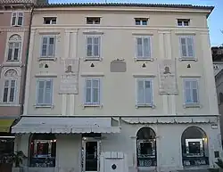 The building is one of the oldest on the square, first mentioned in 1384 as a gothic building named Casa Pizagrua. It was later renovated in neoclassical style. The most recent renovation, which took place from 1985 to 1991, revealed interesting wall paintings. The house is now the seat of the Italian community in Slovenia and is used as a venue for cultural projects, a gallery, and a museum. The museum part displays Tartini's violin, a copperplate engraving of his dreams, and his portrait, among other items.[2]