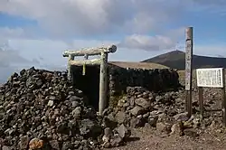Tarumaezan Shrine (樽前山神社, Tarumaezan Jinja) is a Shinto shrine in Tomakomai, Iburi Subprefecture, Hokkaidō, Japan. It is located on Mount Tarumae, and it was promoted to a prefectural shrine in 1936. It enshrines the Shinto kami Kukunochi (久久能智神), Kaya no hime (鹿屋野比賣神), and Oyamatsumi (大山津見神).