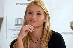 Tatiana Golovin (Russian: Татья́на Григóрьевна Головина́, romanized: Tatyana Grigoryevna Golovina; born 25 January 1988) is a French former professional tennis player. She won the 2004 French Open mixed-doubles event, partnering with Richard Gasquet, and reached the singles quarterfinals at the 2006 US Open, losing to the eventual champion Maria Sharapova. Her career-high singles ranking is world No. 12. In 2008, she was diagnosed with lower back inflammation and was forced to stop playing competitive tennis.[2]