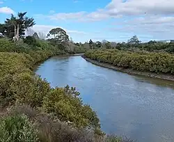The section of the creek known as Te Wai-o-Pareira / Henderson Creek begins at the point when the Opanuku Stream and Oratia Stream intersect at Henderson;[1] where tidal estuarine water from the Waitematā Harbour begins.[2] The creek joins the Mānutewhau Creek at the western edges of the Waitematā Harbour.[1] The south-western arm of the creek where the Momutu and Paremuka streams confluence is known locally as Huruhuru Creek, and traditionally by the name Wai Huruhuru Manawa.[2]