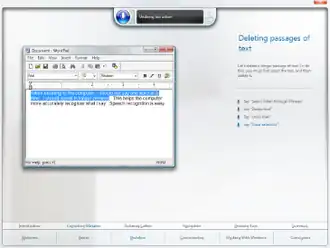 A brief speech-driven tutorial is included to help familiarize a user with speech recognition commands. Training could also be completed to improve the accuracy of speech recognition.