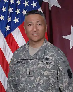 From 2008 to 2010, he served as the ninth US Army Dental Commander and was the first Asian-American to ever hold this position.[6][7][10] In 2010, he was promoted to major general and was appointed to Chief of the US Army Dental Corps, the 26th Chief overall and the first Chinese-American in the role.[13][4][6][15][7] He held this position until his retirement in 2014.[4] He was also appointed Deputy Commanding General for the Western Regional Medical Command and the Commanding General for the William Beaumont Army Medical Center in 2010.[6][7]