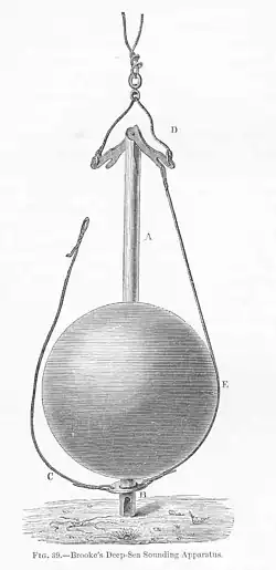 The feature was discovered by Matthew Fontaine Maury while producing a bathymetric chart of the ocean in 1853, compiled from sounding data from multiple ships' logs. Maury so named it because he thought it would be an ideal route for a transatlantic telegraph cable, which at the time, was no more than a vague aspiration.[1] His hydrographers confirmed his assessment of the viability of the route using accurate sounders invented by John Mercer Brooke.[2] Brooke's sounder was designed to release the lead immediately it contacted the bottom so that a sample of the sea bed could be recovered without the risk of the line breaking while it was being hauled back up due to the weight of the lead. Maury had discarded many of the historic readings because he thought they were inaccurate due to the inability of the sounder to tell when the lead had contacted the bottom in deep ocean. This resulted in more line being run out before the reading was taken. Maury's solution to this problem was to determine the law of descent of the line for given sizes of line and weights of lead. Sounders were provided with tables of expected rates of line runout, so that once the rate was much less than that expected, they knew that the bottom had been reached.[3]